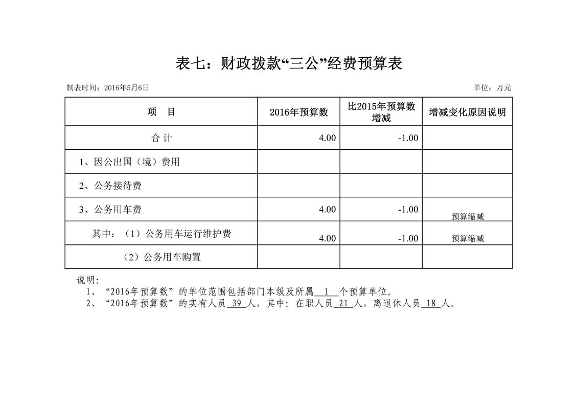通化市档案局2016年部门预算
